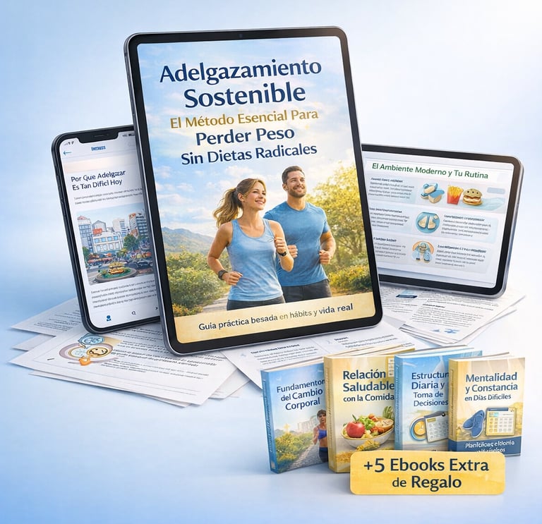Es un ebook práctico y exclusivo que te acompanha durante 8 semanas con un método claro, realista y sostenible para adelgazar sin dietas extremas ni sacrificios imposibles